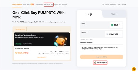 إليك دليل خطوة بخطوة لإجراء عمليات الشراء باستخدام الشراء المتكرر على Bybit.