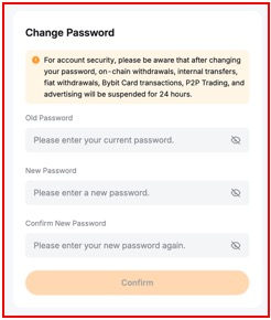 قبل إعادة تعيين كلمة المرور الخاصة بك، يرجى ملاحظة أن الميزات التالية ستكون محظورة لمدة 24 ساعة بعد تعديل كلمة مرور تسجيل الدخول الخاصة بك: