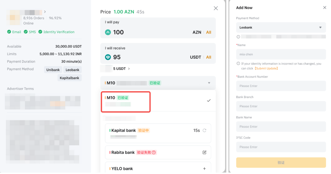 - For more information about the bank account verification requirements, please refer to FAQ — P2P Trading for Azerbaijani Users and AZN Currency.