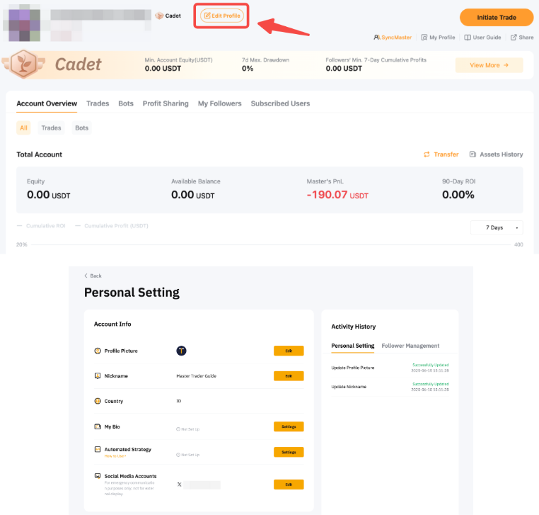Manage Your Master Trader Profile
