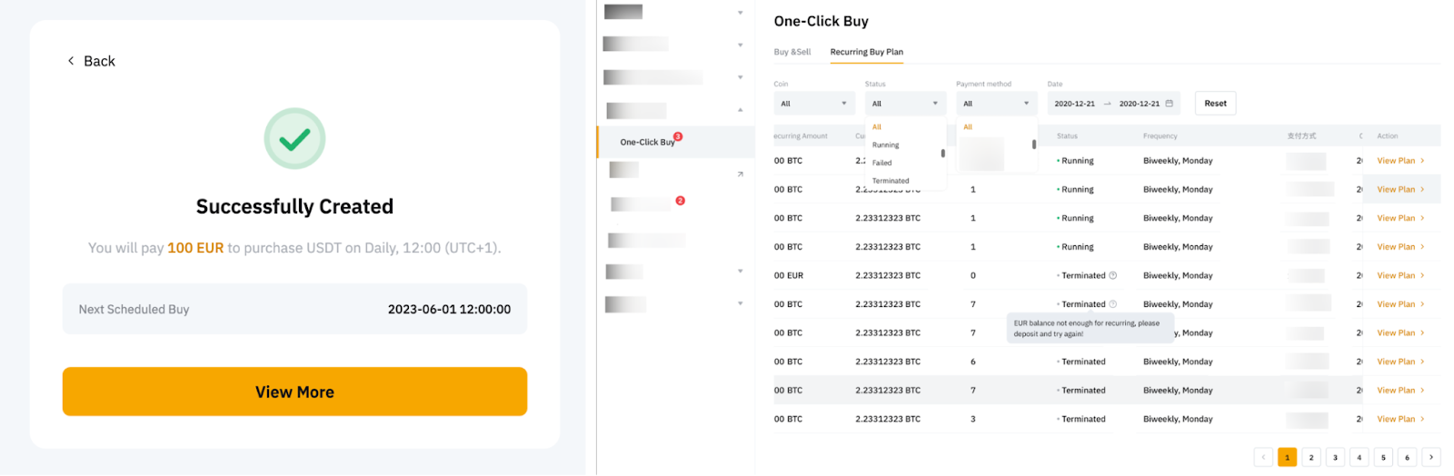 - Dutch users can only use the four (4) pairs: EUR/USDT, EUR/USDC, EUR/ETH and EUR/BTC to purchase Recurring Buy plans.