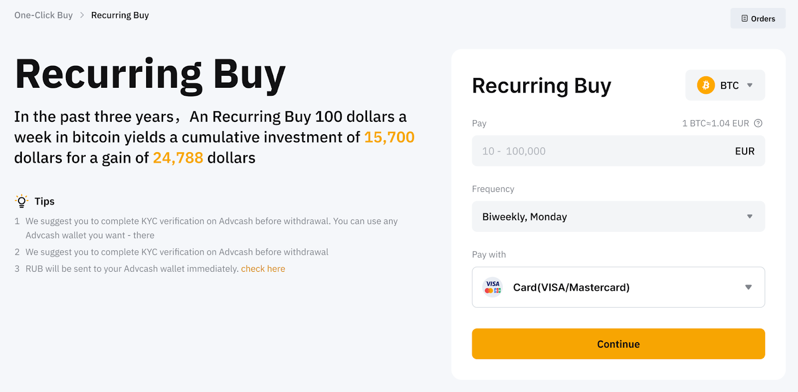 - Russian and Belarus users are only able to purchase Recurring Buy plans in RUB.