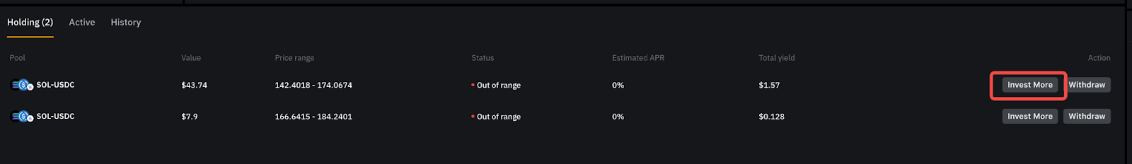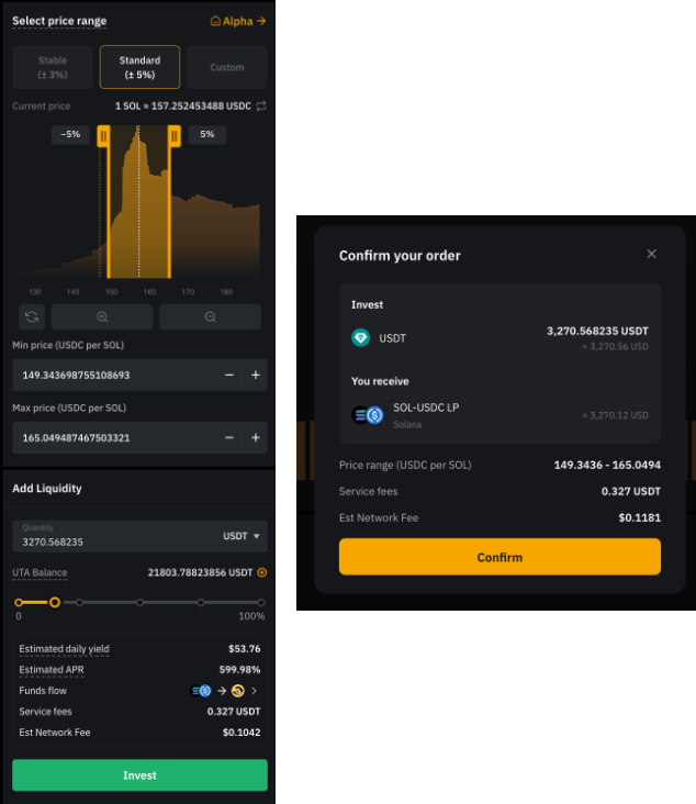 Step 4: Enter the amount of cryptocurrency you wish to invest in the selected liquidity pool, then click Invest and confirm your order.
