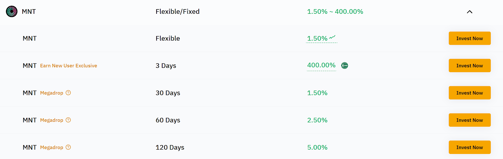 - Hold MNT in flexible- or fixed-term Easy Earn plans for competitive returns.