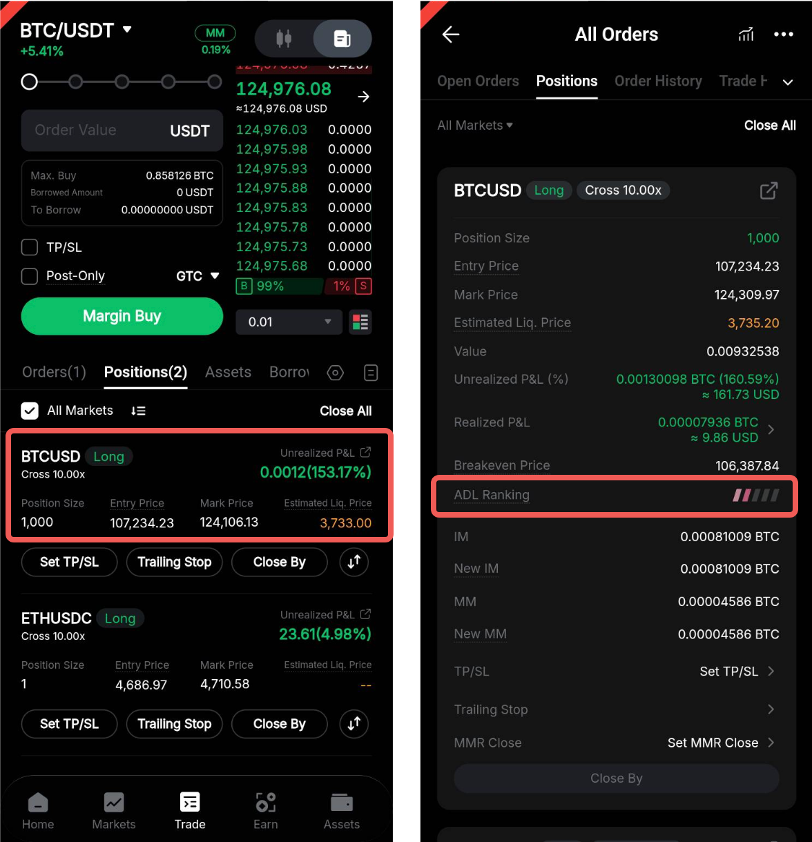 - Menurunkan leverage akan menurunkan peringkat ADL secara real-time.