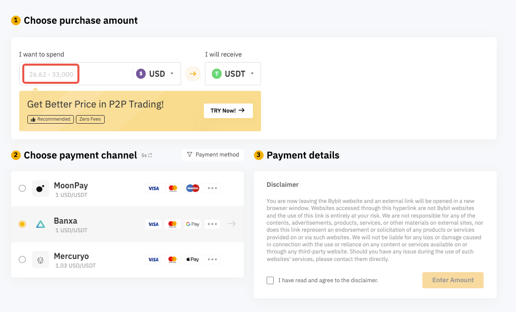 Adakah batasan minimum/maksimum per transaksi jika saya membeli kripto menggunakan penyedia layanan pihak ketiga di Bybit?