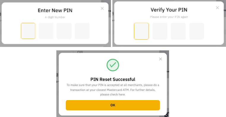 Penting untuk dicatat bahwa setelah mengatur ulang PIN, Anda harus menyelesaikan transaksi di ATM terlebih dahulu (permintaan saldo akan dilakukan) dengan PIN yang baru diubah. Kemudian, kunjungi merchant ritel mana pun untuk menyelesaikan transaksi chip dan PIN dengan PIN baru. Selanjutnya, Anda dapat menggunakan Kartu Bybit untuk mendapatkan PIN baru atau nirsentuh.