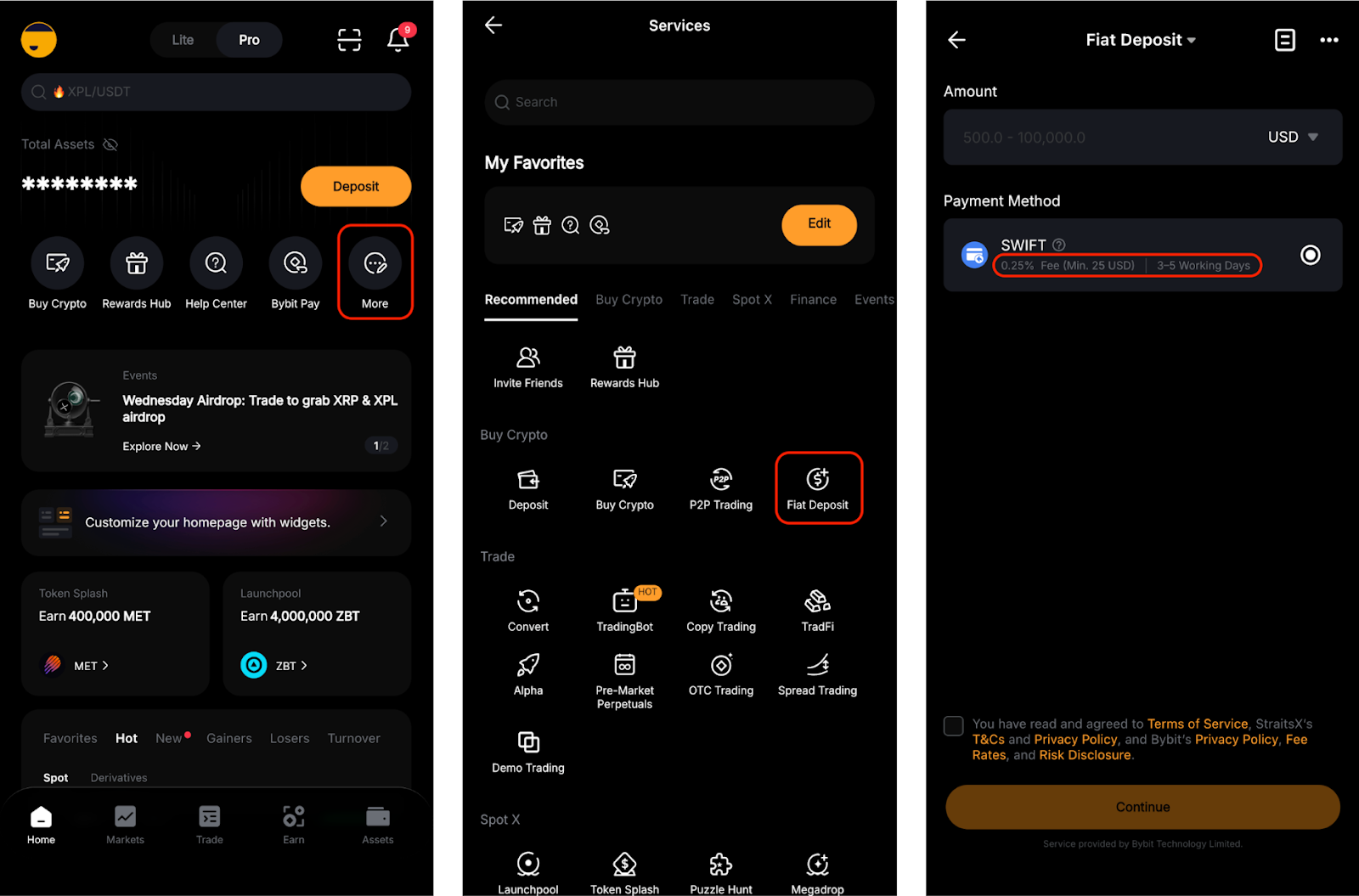 Pada Aplikasi, buka Halaman Beranda dan ketuk Selengkapnya, lalu pilih Fiat Deposit. Selanjutnya, ketuk mata uang fiat untuk melihat biaya terkait untuk setiap metode pembayaran yang tersedia.