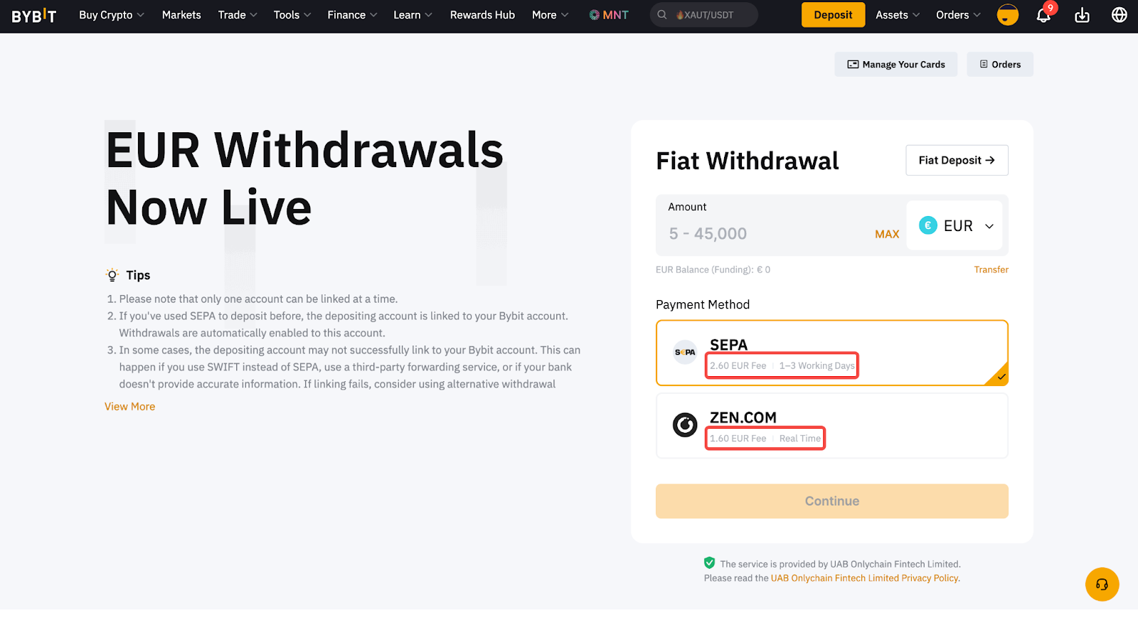 Tidak ada biaya penarikan yang akan dikenakan untuk Transfer Internal pada Akun Bybit lain.