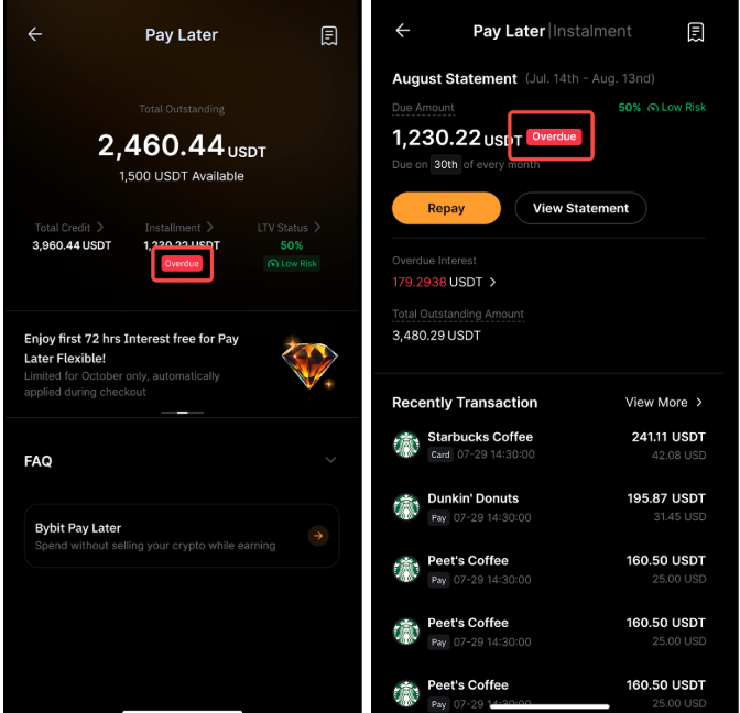 Anda akan melihat label Jatuh Tempo pada halaman Bybit Pay Later dan halaman Pernyataan.