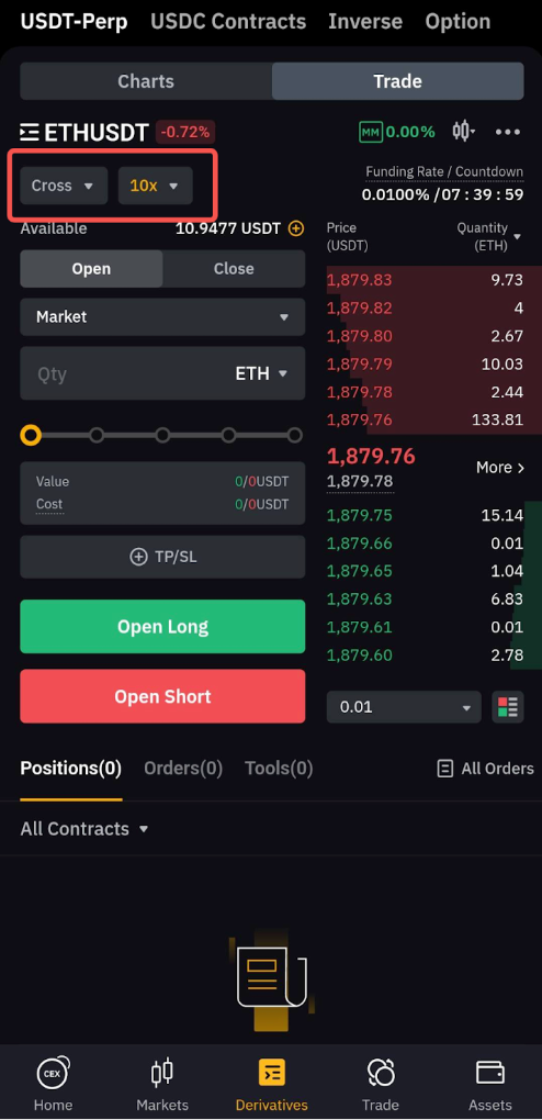 Anda dapat mengalihkan mode margin dari laman perdagangan mana pun atau laman aset Akun Perdagangan Terpadu. Harap diperhatikan bahwa untuk beralih ke mode Margin Lintas, leverage dan batas risiko yang digunakan untuk posisi dua arah (posisi long dan short) harus sama. Jika tidak, peralihan akan gagal. Untuk mendapatkan informasi selengkapnya, silakan merujuk pada kriteria untuk peralihan mode margin yang tercantum di sini.
