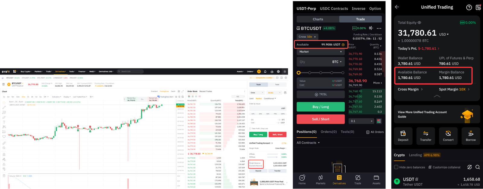 Dengan kata lain, aset margin yang didukung di UTA dapat dikolateralkan dan saldo margin dalam USD (atau pengaturan mata uang yang Anda pilih) akan dihitung. Anda dapat menggunakan saldo margin yang tersedia untuk membuat pesanan guna memperdagangkan produk yang didukung di UTA, bahkan tanpa memegang koin penyelesaian masing-masing. Untuk informasi selengkapnya, silakan kunjungi di sini.