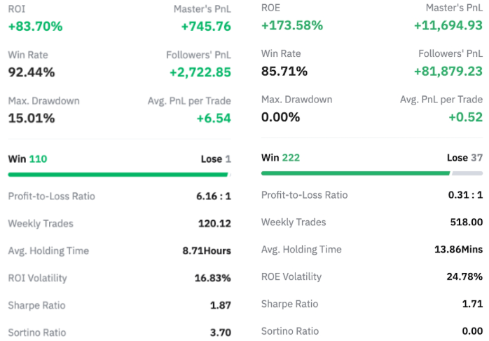 Total ROI (Pengikut) | Total keuntungan dari copy trade yang diprakarsai oleh Master Trader/Margin kumulatif yang diperlukan untuk menyalin perdagangan ini |