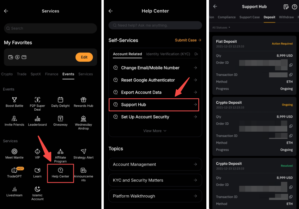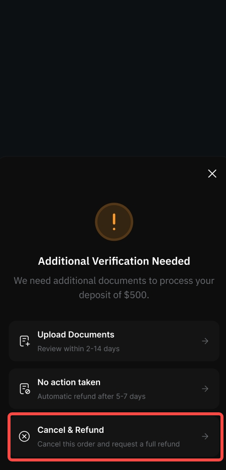 Jika verifikasi EDD diperlukan agar transaksi Anda dapat diproses dan Anda tidak ingin melanjutkan, Anda dapat membatalkan transaksi melalui Hub Dukungan dengan mengikuti langkah-langkah berikut.