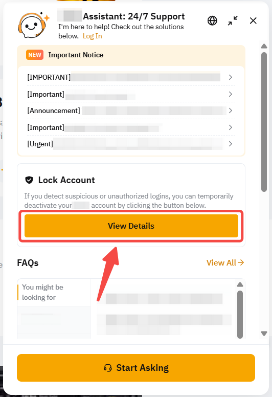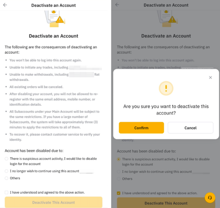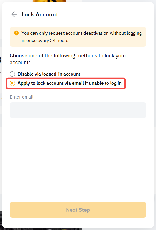 Catatan: Jika Anda adalah pengguna yang terdaftar di ponsel atau kehilangan akses ke email Anda, silakan menghubungi layanan obrolan langsung kami untuk segera membantu membekukan akun Anda.