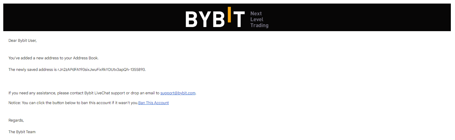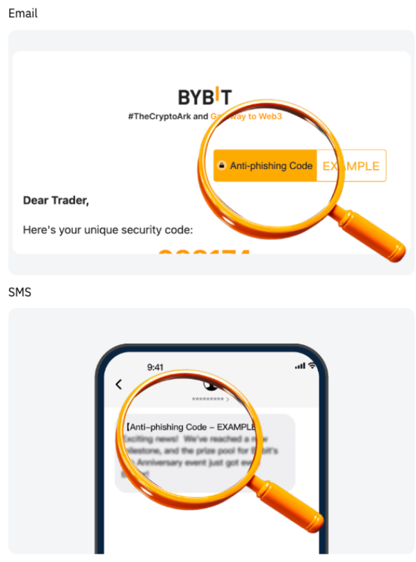 Kode Anti-Phishing Bybit adalah fitur keamanan yang dipersonalisasi yang terdiri dari kombinasi huruf, angka, dan simbol yang unik. Setelah diaktifkan, kode ini akan muncul di semua email resmi dan pesan teks dari Bybit, memungkinkan Anda dengan mudah memverifikasi keaslian informasi yang Anda terima.