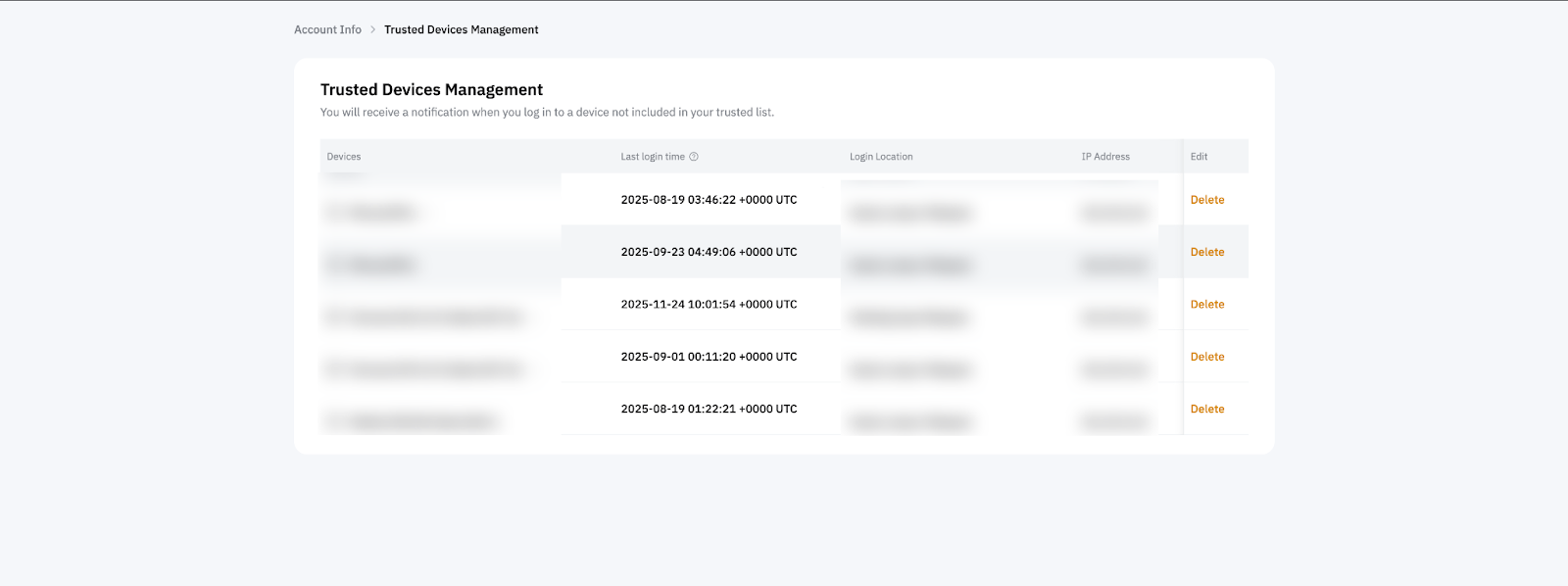 - Hapus perangkat yang tidak dikenal dari daftar Perangkat Tepercaya Anda untuk mencegah akses lebih lanjut.
