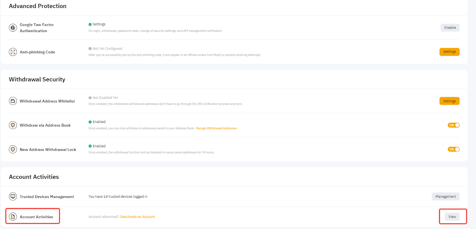Jika Anda melihat atau mencurigai bahwa akun Anda berisiko diretas, Anda disarankan untuk menonaktifkan akun Anda dari laman keamanan akun atau melalui tautan di alamat penarikan baru atau email pemberitahuan login perangkat baru.