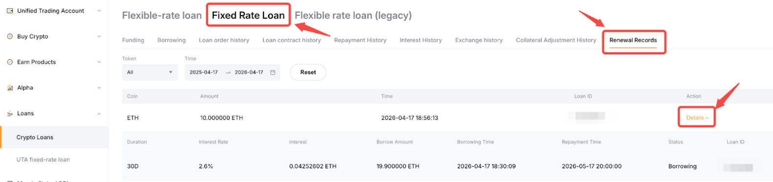 Jika Anda memperpanjang di bawah Pesanan Pinjaman yang sama, Anda dapat mengklik Detail untuk Lihat catatan rincian.