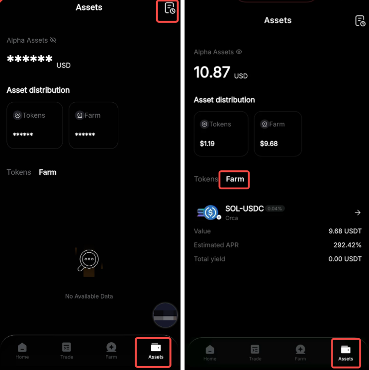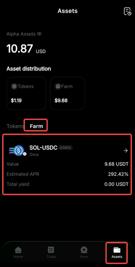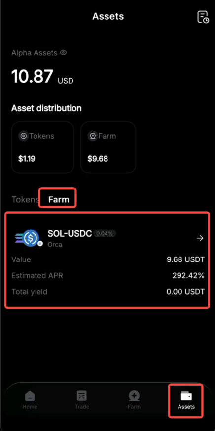 Langkah 1: Masuk ke Aset → Tab Farm untuk melihat pesanan aktif Anda.