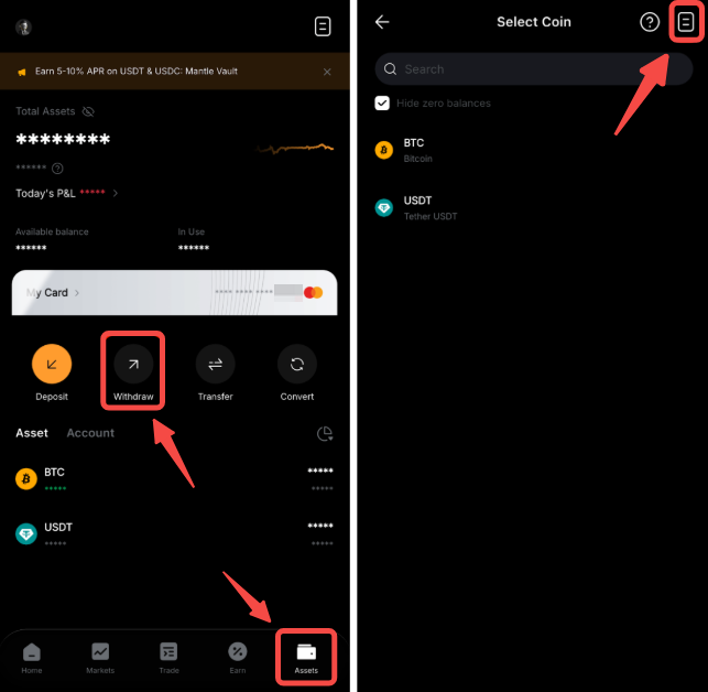 Jika transaksi Anda dilakukan melalui Transfer Internal, Anda dapat melihat detail transaksi dengan membuka Aset → Tarik → Riwayat Aset.