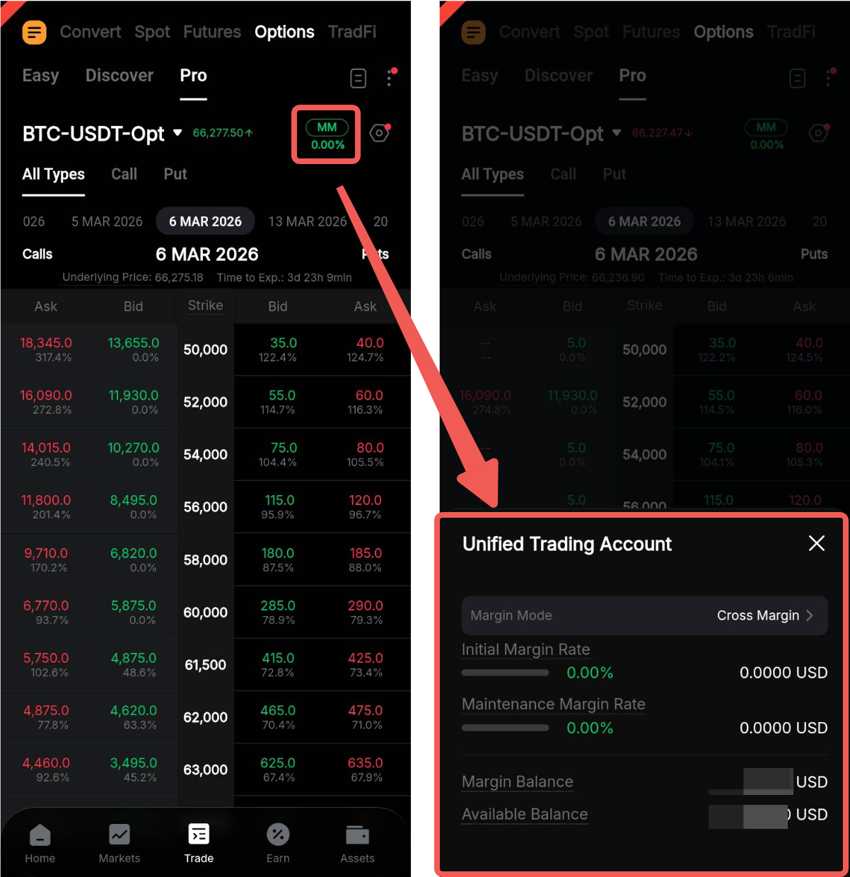 Sebelum Anda mulai melakukan trading Opsi, pastikan mode margin Anda diatur ke Margin Silang atau Margin Portofolio, karena trading Opsi di Bybit tidak mendukung mode Margin Terisolasi.