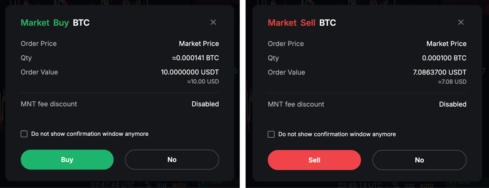 Langkah 3: Jendela konfirmasi akan muncul. Pastikan detail pesanan Anda benar, lalu klik Beli atau Jual.