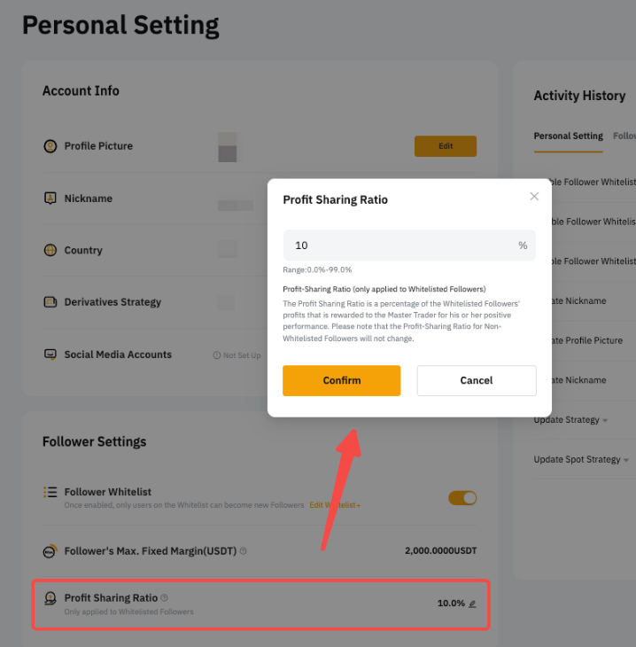 3. You can set a profit-sharing ratio between 0% and 50%. Any changes will apply to all Followers.