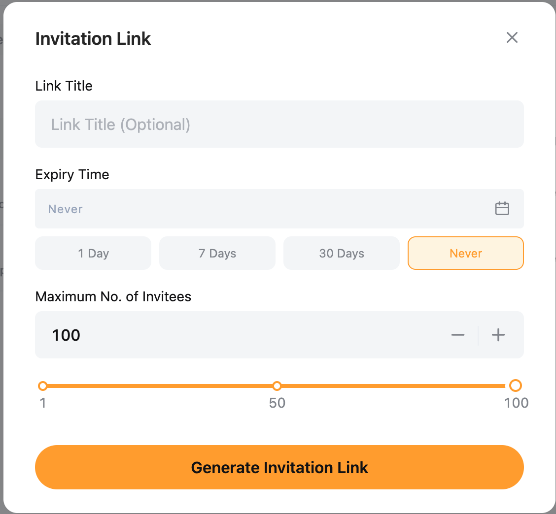 1. Expiration Time: Choose 1 day, 3 days, 7 days, or Never, or set a specific expiration date and time. Once the link expires, invitees will no longer be able to join using the link.