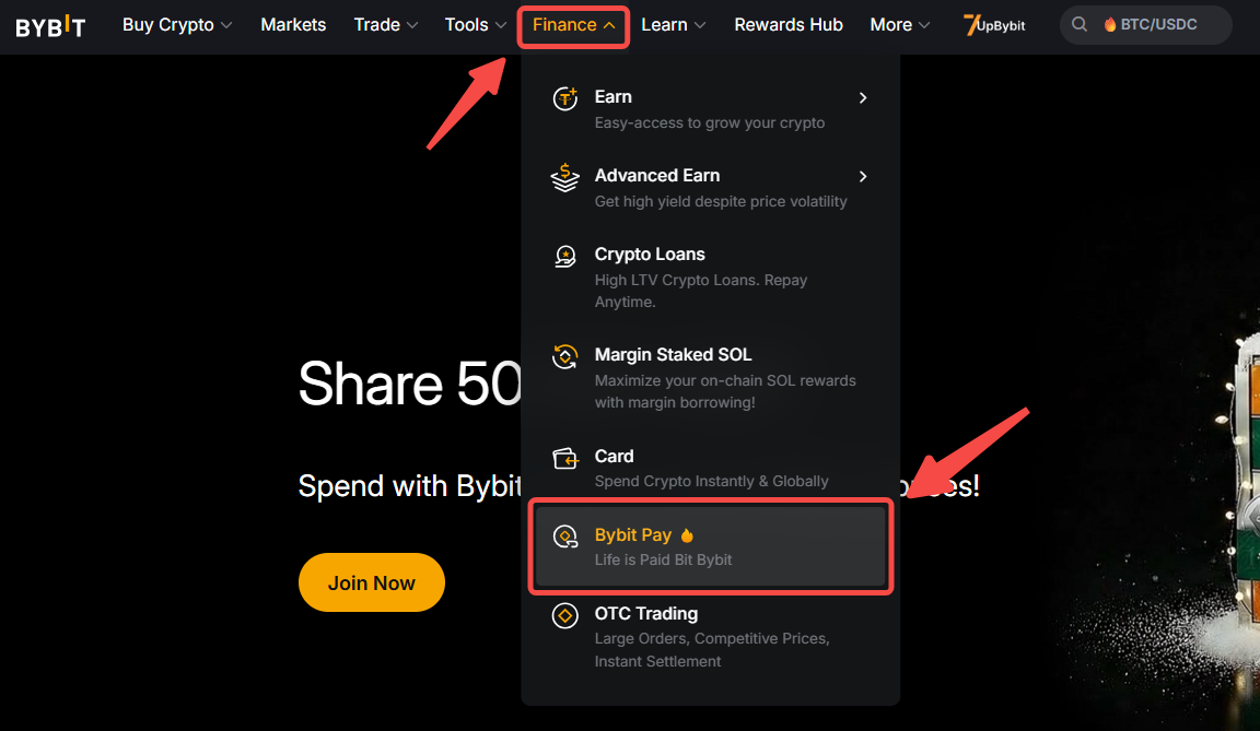 Langkah 1: Dari beranda Bybit, klik Keuangan → Bybit Pay di bilah navigasi untuk masuk ke halaman Bybit Pay. Lalu, klik tombol Kirim.