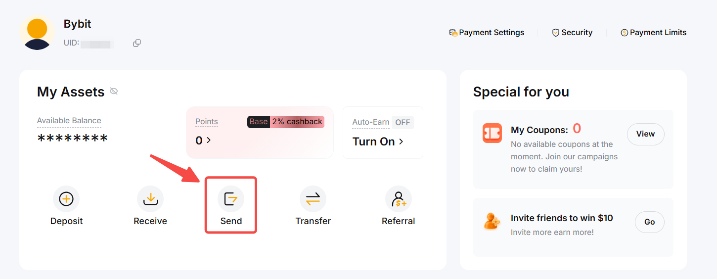 Anda dapat menemukan UID Bybit Anda di halaman profil Anda atau halaman Bybit Pay.