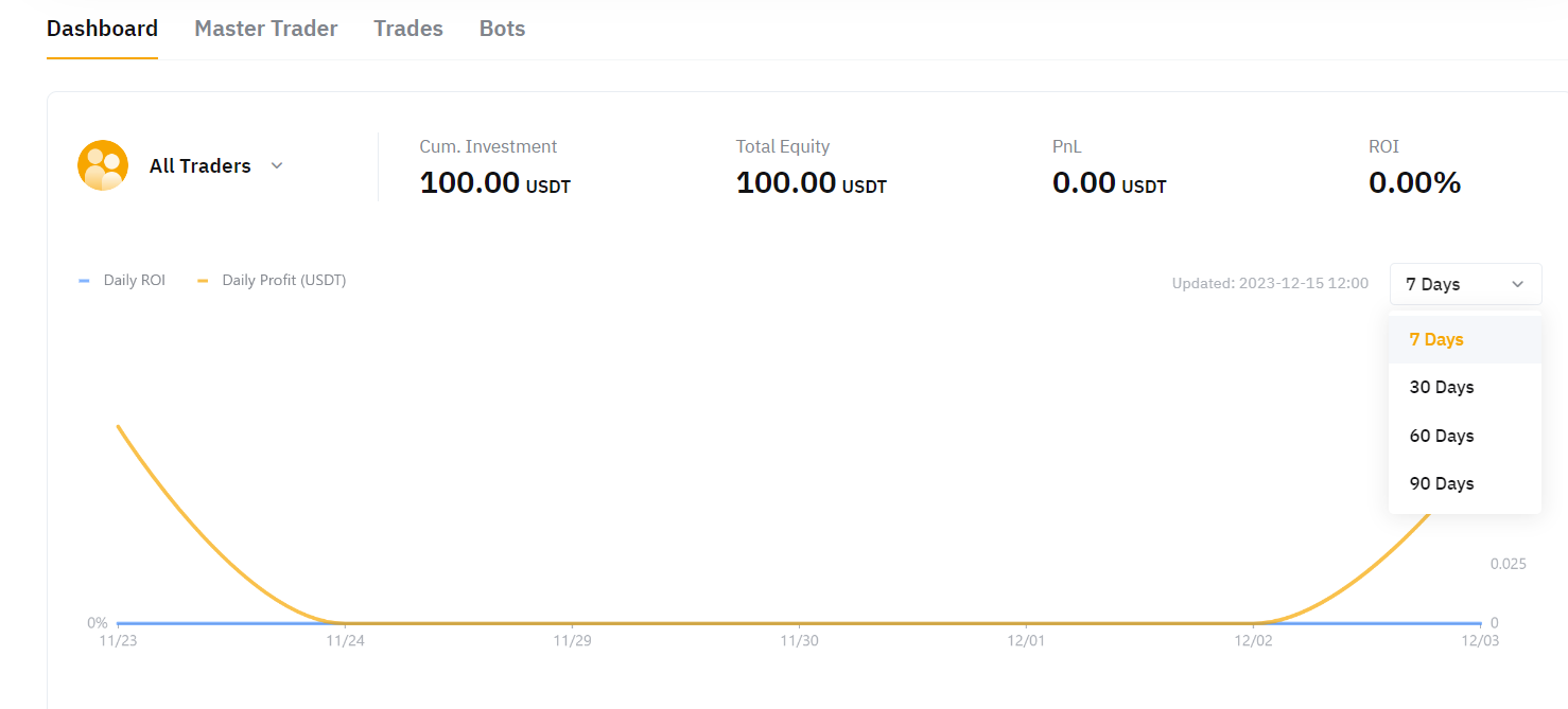 Anda dapat melihat hasil L&R saat ini dan ROI semua Master Trader yang diikuti, atau memfilter masing-masing Master Trader untuk melihat hasilnya satu per satu.