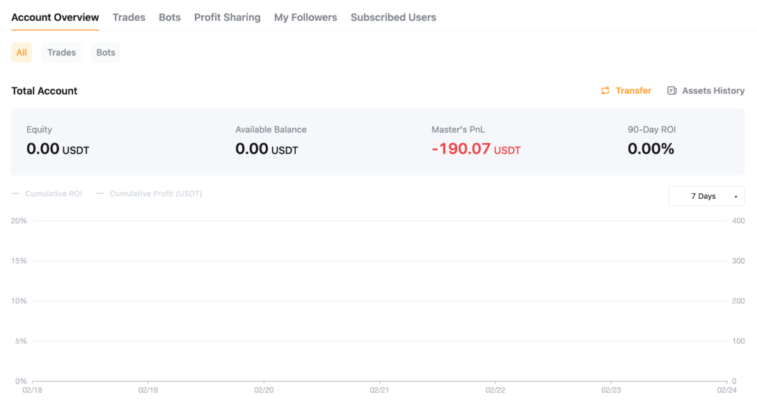 Dari Pusat Pengguna Copy Trading (Master Trader), Anda bisa mendapatkan ikhtisar Akun Copy Trading Anda, termasuk performa sebelumnya, performa pengikut, dan detail pesanan Anda.