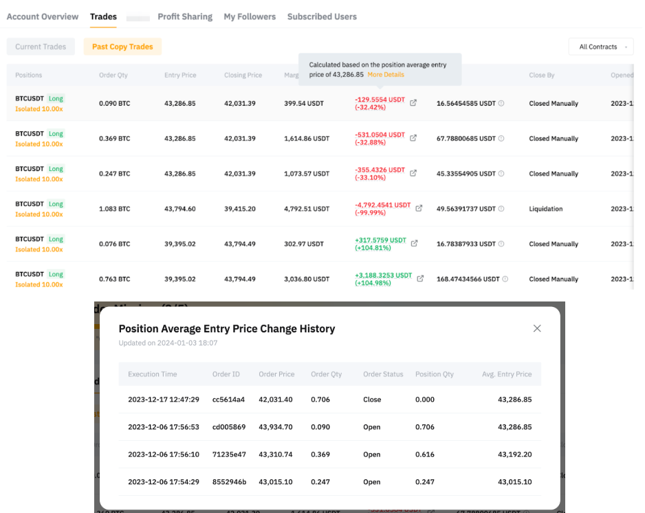 Anda dapat melihat detail posisi tutup Anda di sini, termasuk waktu penutupan, harga penutupan, dan L&R Tertutup, biaya yang timbul, dan masih banyak lagi. L&R Tertutup dihitung berdasarkan harga entri rata-rata posisi. Arahkan kursor Anda ke bagian L&R Tertutup dan klik Informasi Selengkapnya untuk melihat Riwayat Perubahan Harga Entri Rata-Rata Posisi.
