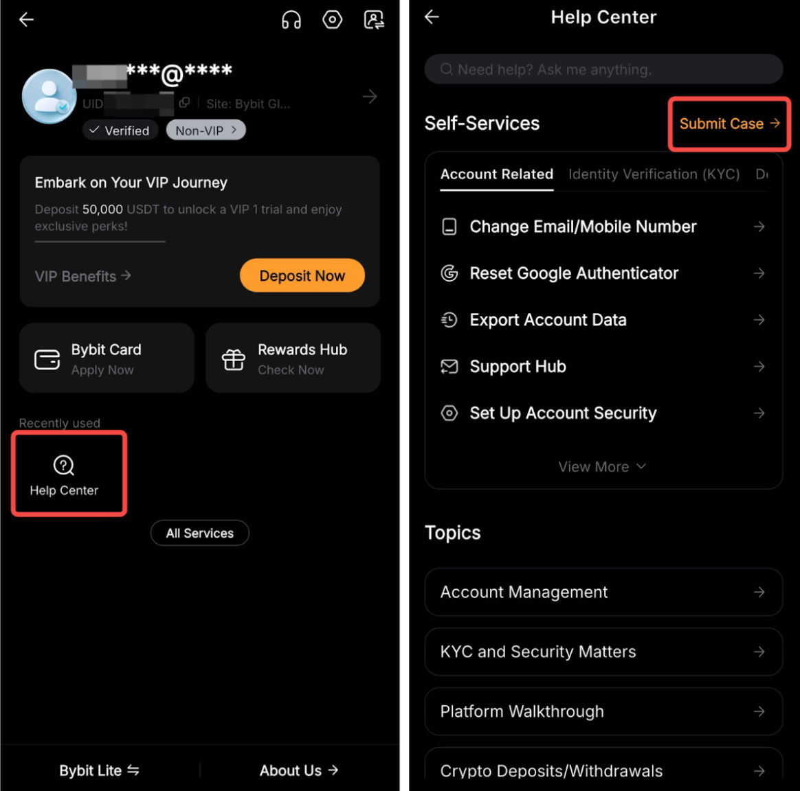 Langkah 1: Kunjungi Pusat Bantuan Bybit dan klik Pusat Dukungan.