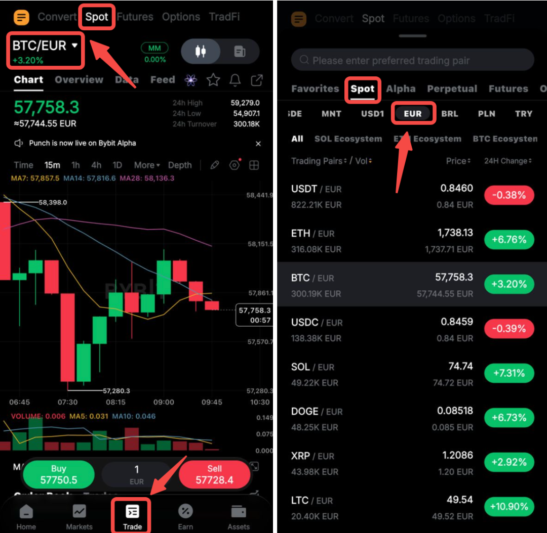 Silakan Klik Perdagangan → Perdagangan Spot di bilah navigasi, lalu pilih Fiat yang diinginkan untuk memulai transaksi Anda.