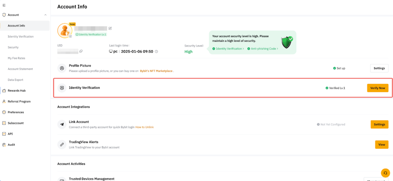 - Untuk pengguna kartu Bybit, Anda disarankan untuk menutup kartu Bybit Anda melalui laman pengelolaan kartu sebelum melanjutkan transfer identitas. untuk informasi lebih lanjut, silakan merujuk ke T&J Kartu Bybit.