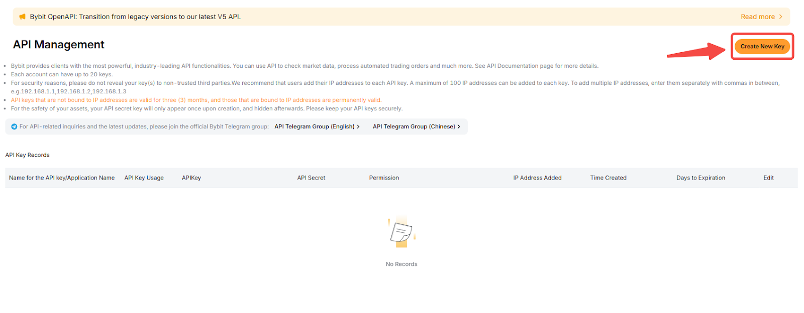 Catatan: Meskipun Anda dapat menggunakan Aplikasi Bybit untuk membuat dan mengelola kunci API, disarankan untuk menggunakan situs web Bybit agar pengaturannya lebih mudah.
