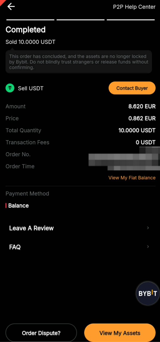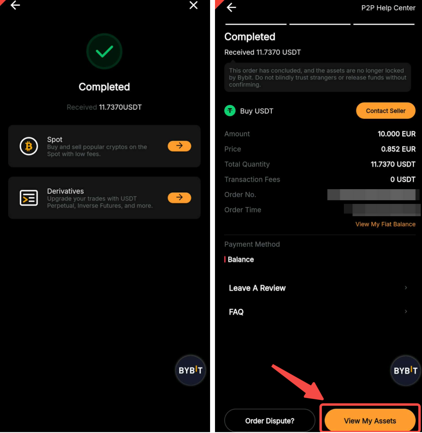 Langkah 7: Setelah penjual berhasil merilis koin yang dibeli, Anda dapat tekan Lihat Aset Saya untuk melihatnya beserta riwayat transaksi Anda. Anda juga dapat memeriksa status pesanan Anda dari riwayat pesanan P2P.