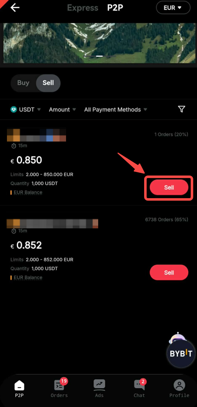 Langkah 3: Pilih pengiklan pilihan Anda dan klik Jual. Pastikan pengiklan yang Anda pilih mendukung pembayaran Saldo Fiat.