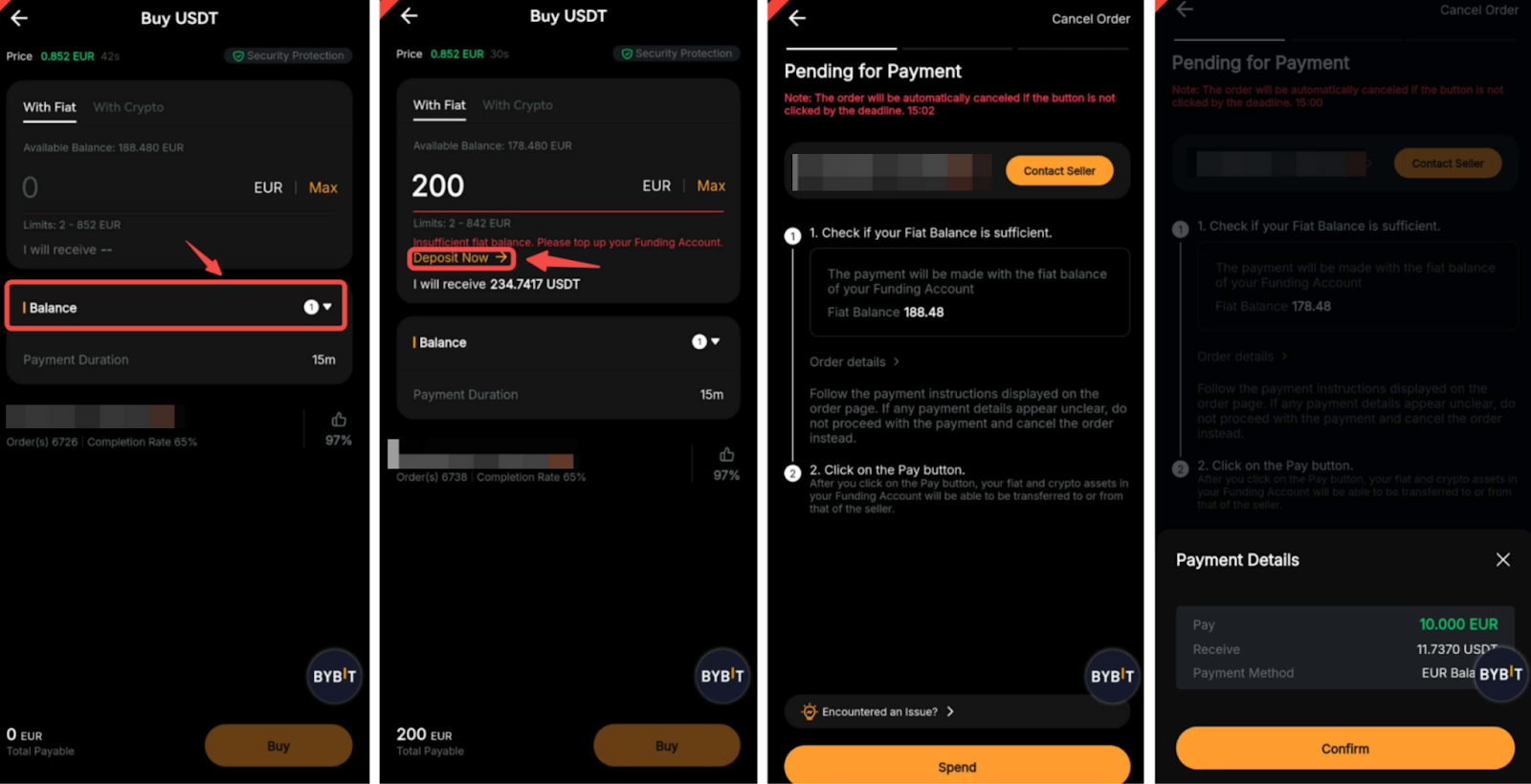 Panduan langkah demi langkah berikut menguraikan cara menyelesaikan transaksi P2P pertama Anda menggunakan saldo fiat di Bybit.