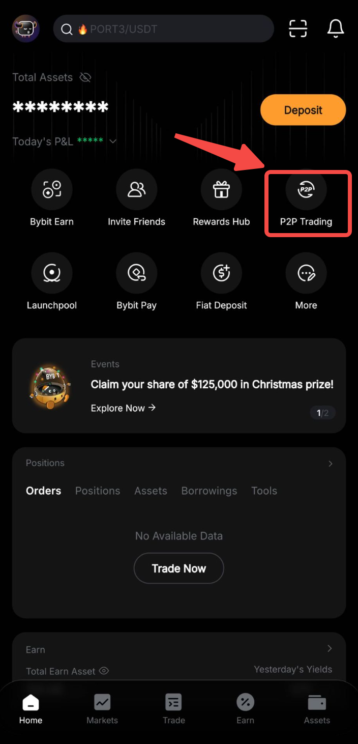 Langkah 1: Klik Perdagangan P2P pada halaman beranda untuk mengakses halaman perdagangan P2P.