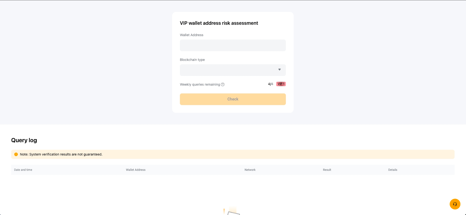 Fitur ini hanya tersedia untuk pengguna VIP. Setiap level VIP diberikan sejumlah pertanyaan penilaian risiko per minggu dan kuota pertanyaan direset setiap Minggu pukul 00.00 (tengah malam) UTC. Anda dapat meningkatkan level VIP untuk mendapatkan permintaan pemeriksaan (kueri) yang lebih sering.