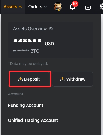 Langkah 1: Buka laman Aset Anda dan klik Deposit