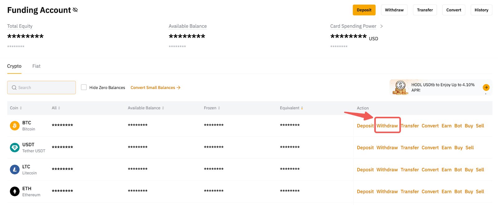 Atau, Anda juga dapat mengeklik Aset di sudut kanan atas laman beranda dan membuka Akun Pendanaan Anda. Lalu, klik Penarikan pada kolom koin yang ingin Anda tambahkan ke alamat dompet.