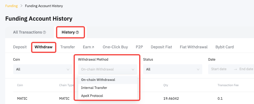 Langkah 3: Buka Riwayat → Penarikan dan pilih metode penarikan yang Anda gunakan untuk melakukan penarikan.