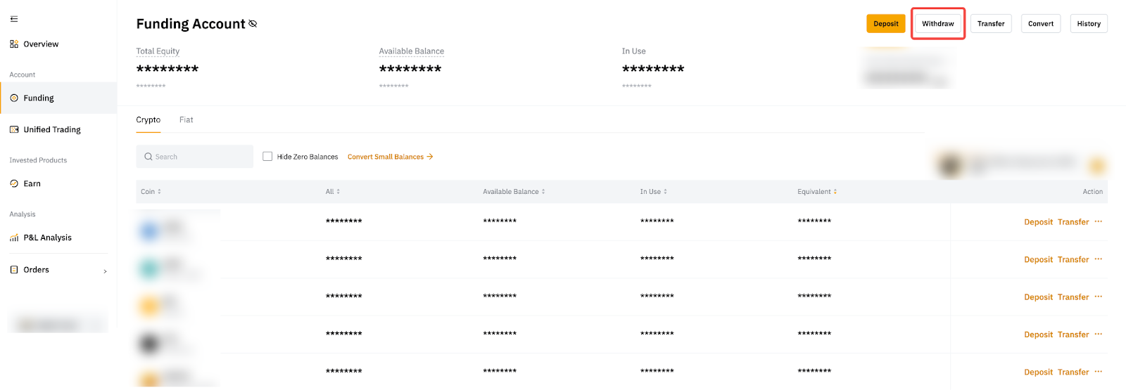 Anda juga dapat mengakses Convert (Ubah) langsung dari laman Akun Pendanaan atau Akun Perdagangan Terpadu.