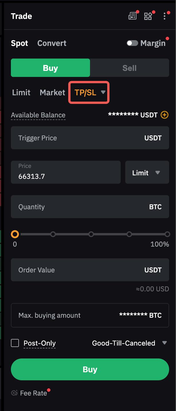 — Harga pesanan untuk TP dan SL tidak dapat melampaui batas harga kontrak yang ditetapkan untuk harga pemicu dalam pesanan Limit. Misalnya, jika batas harga untuk BTC/USDT adalah 3%, harga pesanan beli TP/SL tidak boleh melebihi 103% dari harga pemicu, sedangkan harga pesanan jual TP/SL tidak boleh turun di bawah 97% dari harga pemicu. Lihat aturan perdagangan spot kami untuk batas harga spesifik pada setiap simbol.