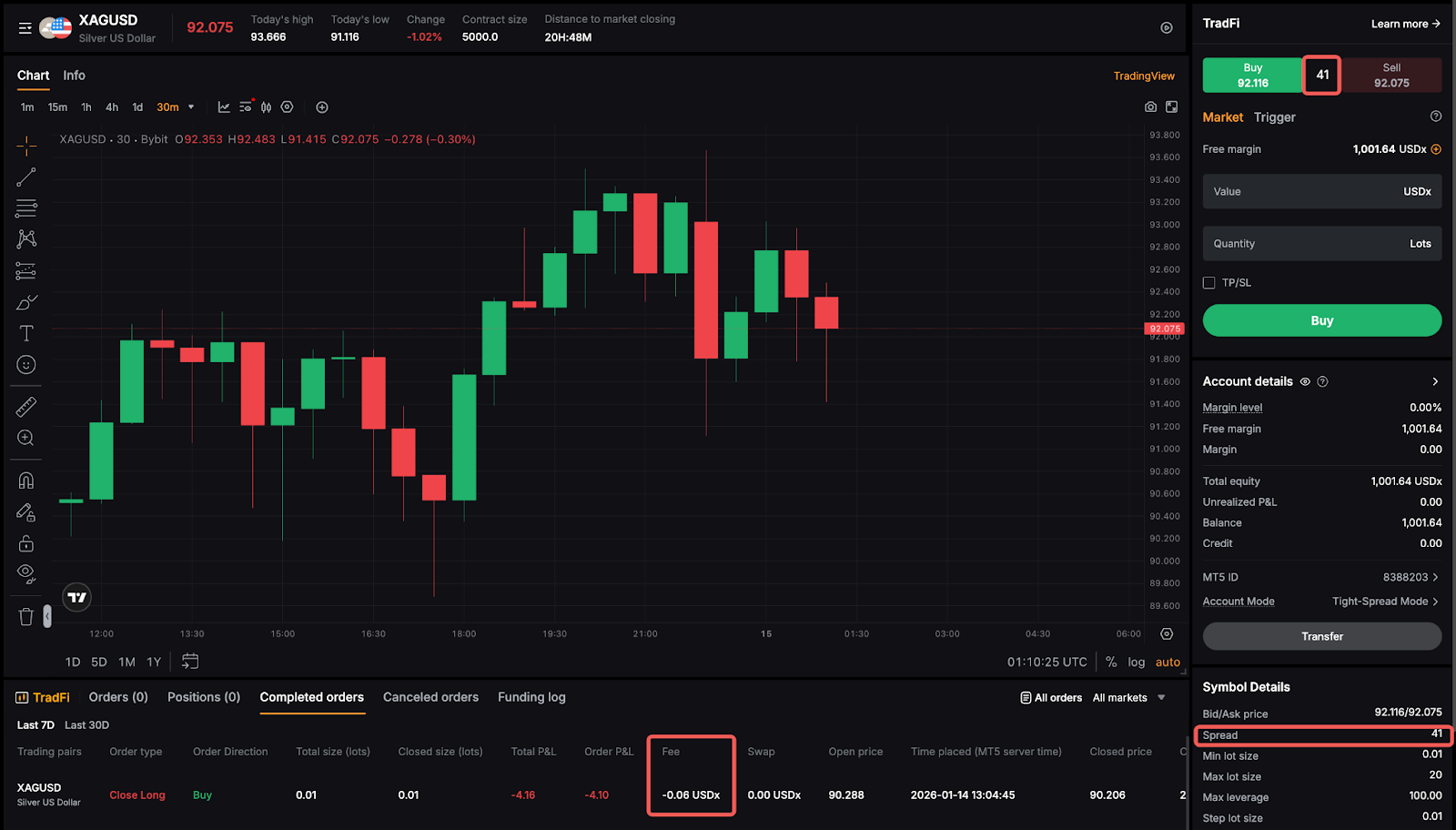 Penyebaran yang ditunjukkan dalam antarmuka perdagangan sudah mencakup biaya perdagangan. Tidak ada komisi tambahan yang diterapkan.