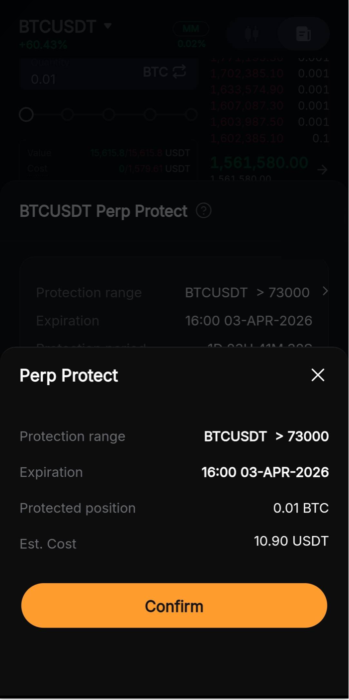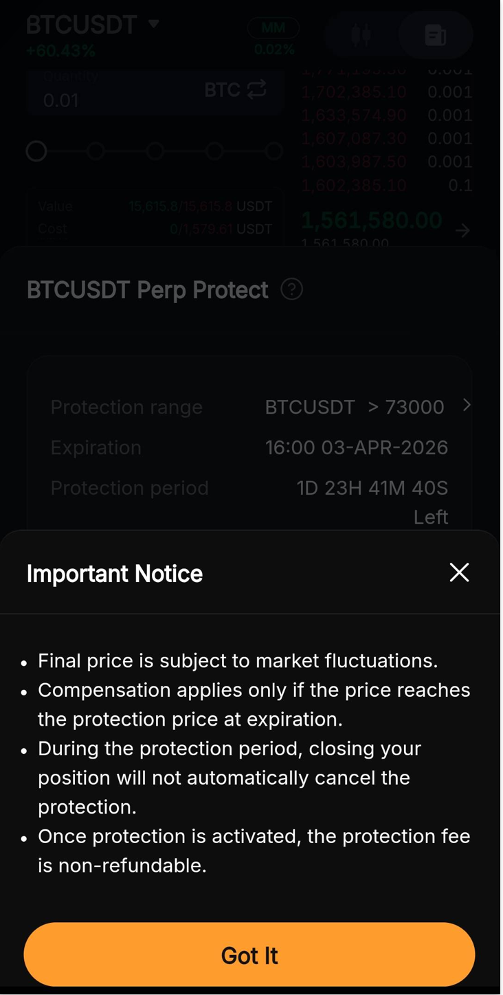 — Penyelesaian Opsi yang diperoleh melalui Perp Protect tidak memengaruhi Posisi Perpetual Anda. Anda harus mengelola atau menutup Kontrak Perpetual secara terpisah.